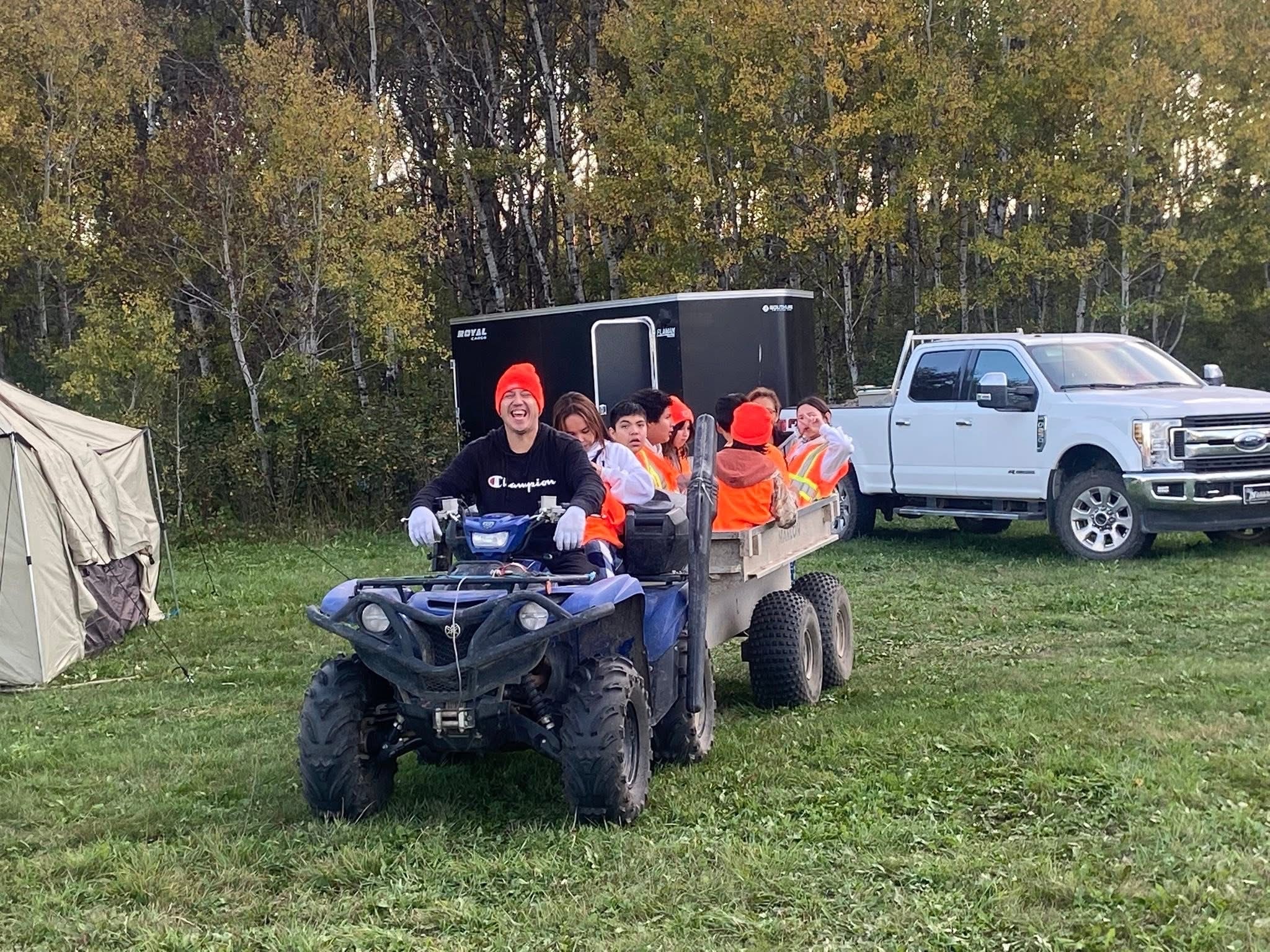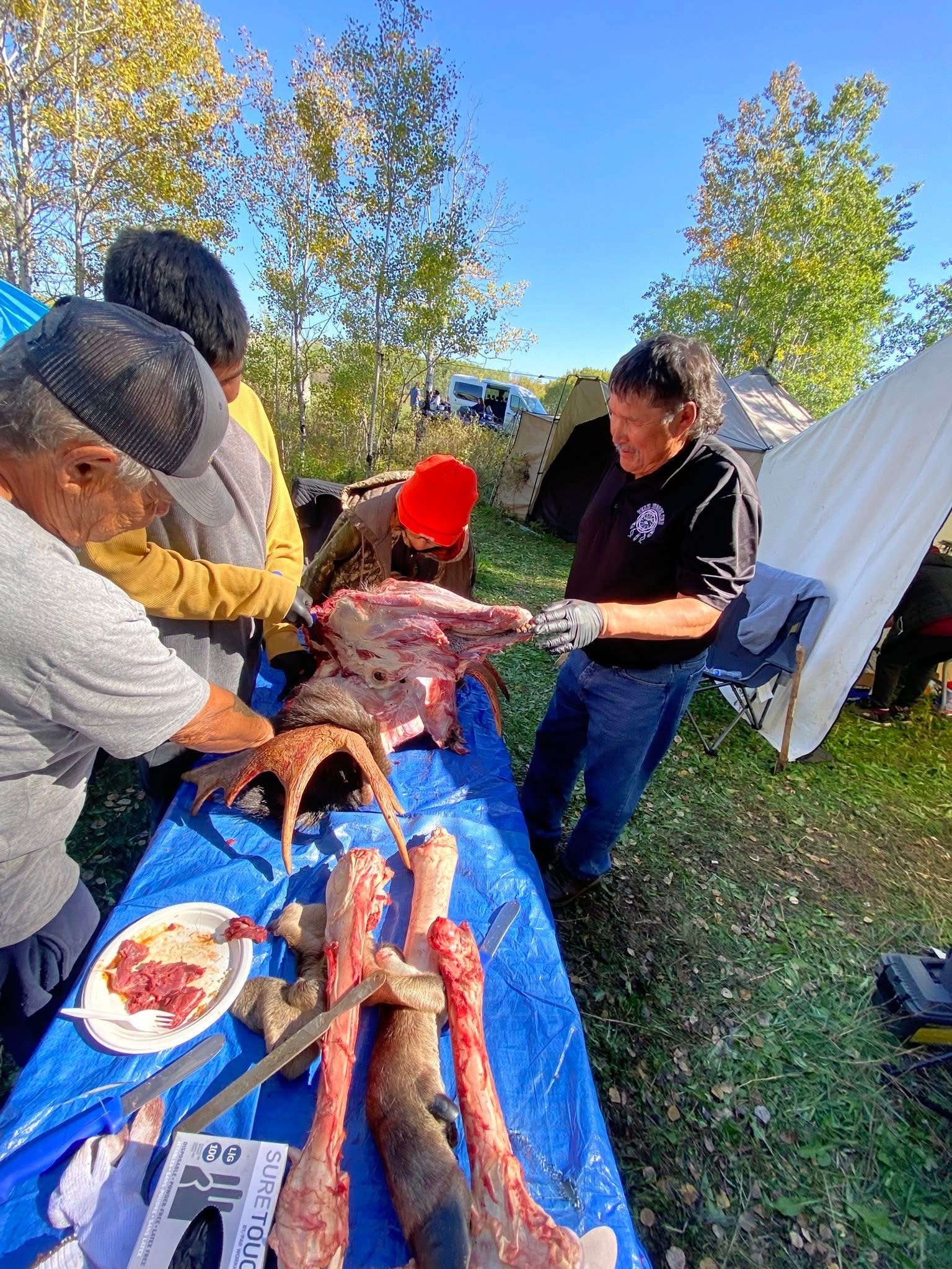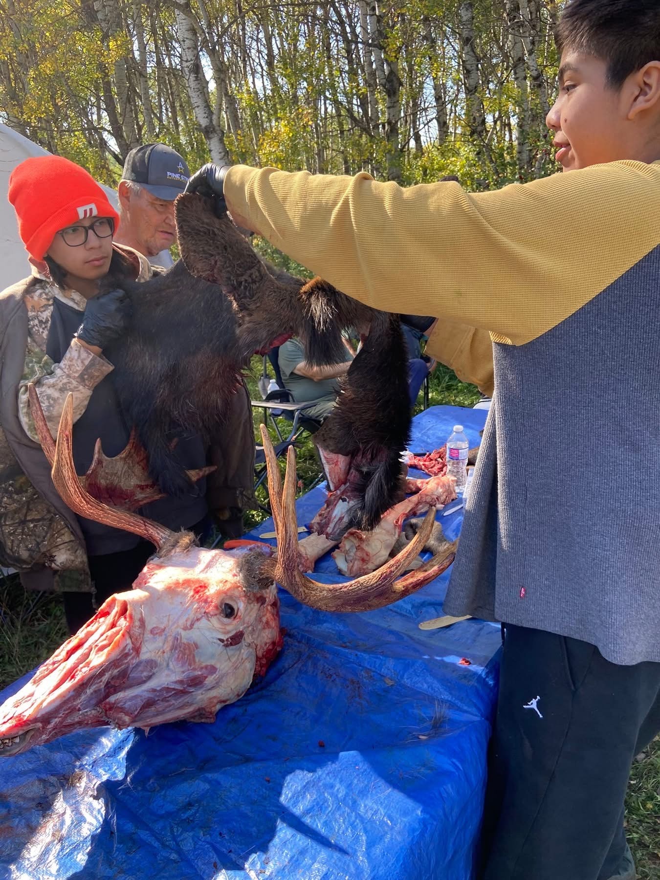 Senator Allan Bird Memorial School Youth Hunting Camp. 2025 Land based learning. “Our way of life” Students learning from our leaders Grand Chief Hardlotte taught the students how to prep the moose head. Grateful for his teachings. Jay Are En also came to help out with the hunting. Plus his famous fish fry. I also invited My eldest Brother Ralph Beatty Jr and Nephew Robin Beatty as my hunters. Very Grateful for all the experienced hunters, guides and workers. Tiniki ninanaskomon