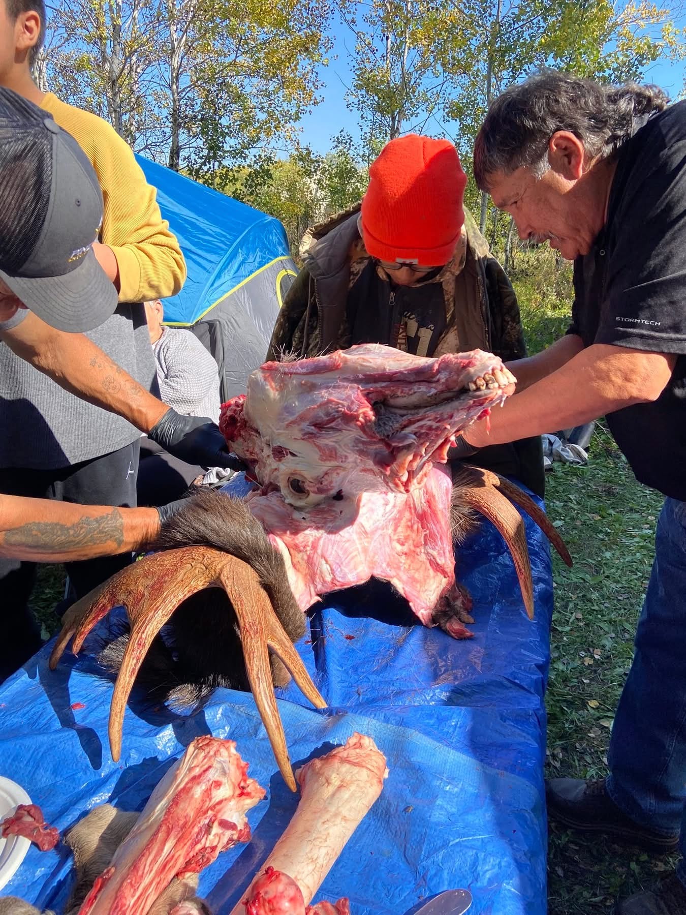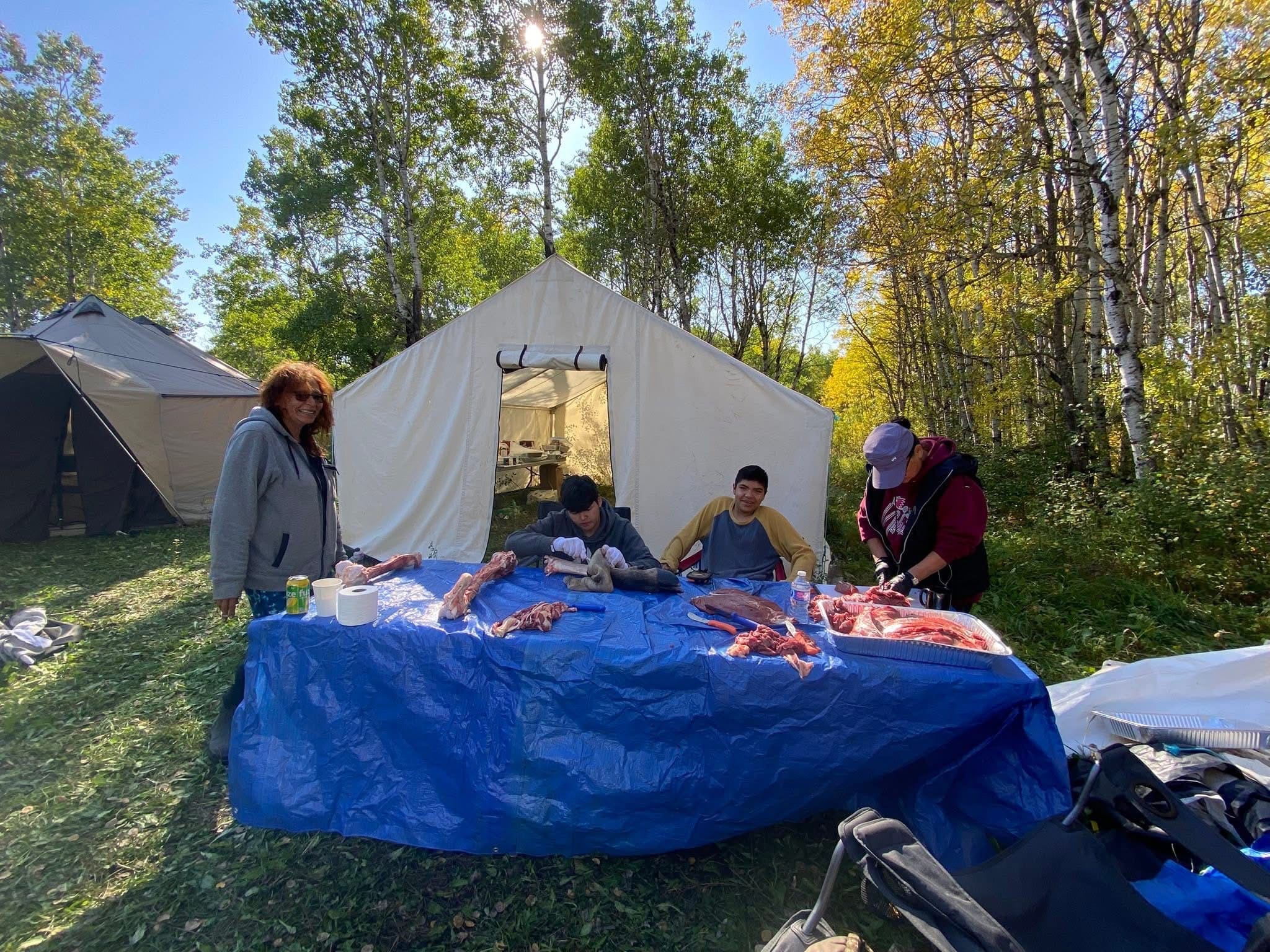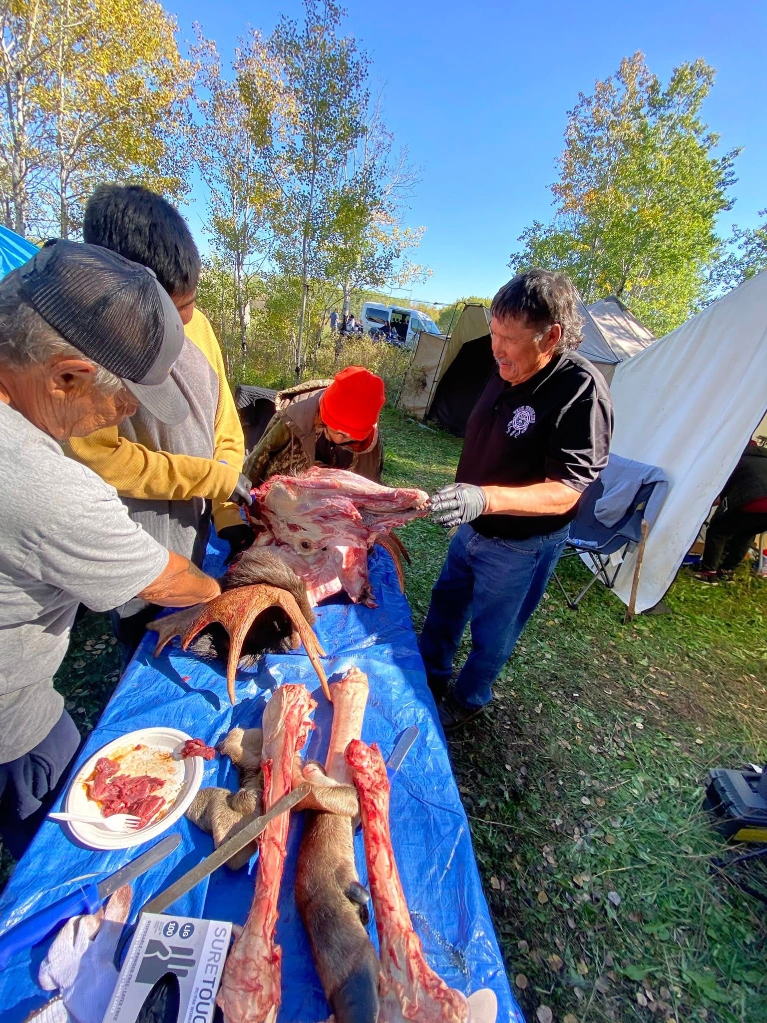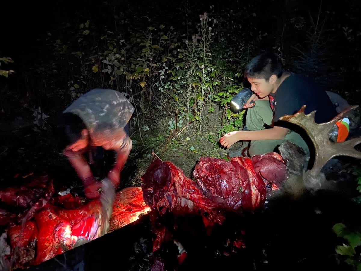 Senator Allan Bird Memorial School Youth Hunting Camp. 2025 Land based learning. “Our way of life” Students learning from our leaders Grand Chief Hardlotte taught the students how to prep the moose head. Grateful for his teachings. Jay Are En also came to help out with the hunting. Plus his famous fish fry. I also invited My eldest Brother Ralph Beatty Jr and Nephew Robin Beatty as my hunters. Very Grateful for all the experienced hunters, guides and workers. Tiniki ninanaskomon