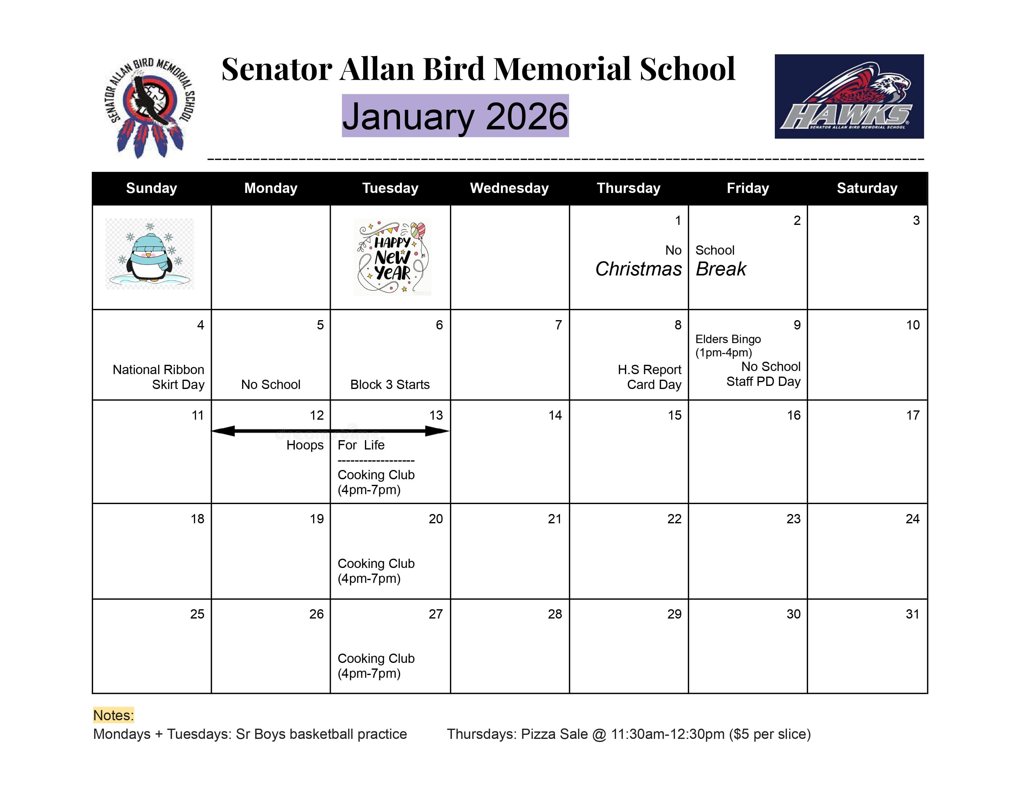 Senator Allan Bird Memorial School is sharing a friendly reminder that winter is arriving. Students are being warned to stay away from thin ice, and parents are encouraged to talk with their children about the dangers it poses. Families are also asked to ensure children are appropriately dressed for the colder weather. Thank you for helping keep our students safe.